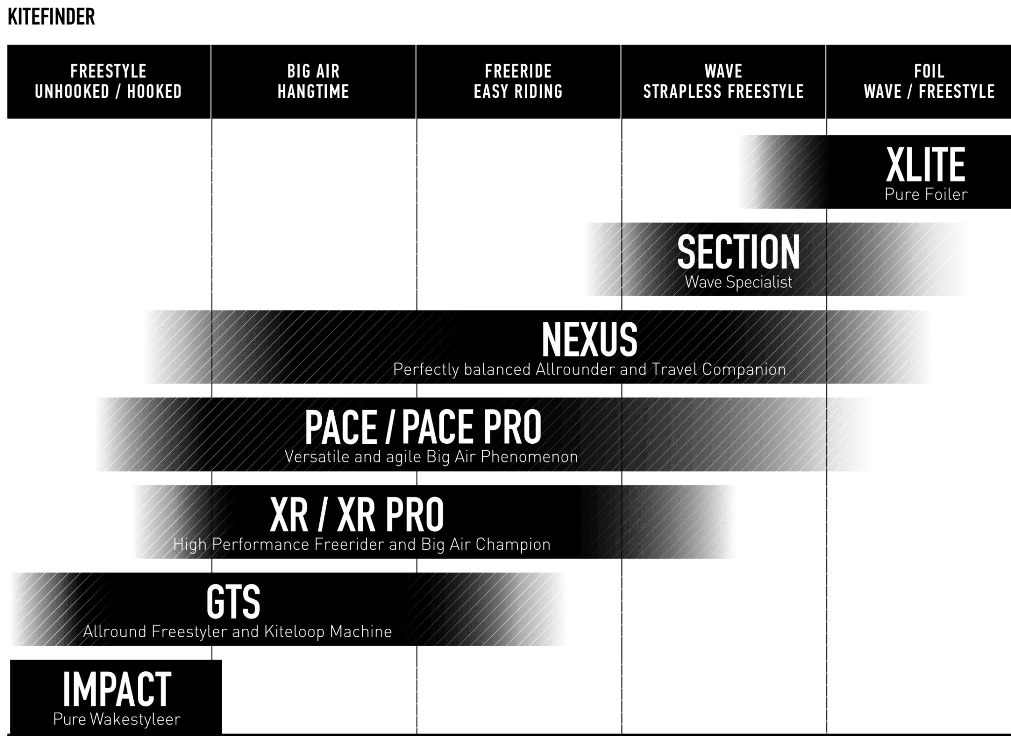 Die Fixe Bridle fördert die Performance und unterstützt das spielerische Handling. Mit 14 Punkten, die den Bogen des Kites stützen, lassen sich noch dünnere Leading-Edge-Durchmesser konstruieren und die optimale Position im Windfenster stärker beeinflussen. Die Loops sind gleichmäßig ohne Progression und die Drehradien variabel steuerbar. Geringere Lenk- und Haltekräfte als beim Pro machen das Handling insgesamt etwas einfacher und softer, ohne Kompromisse beim Grundzug.