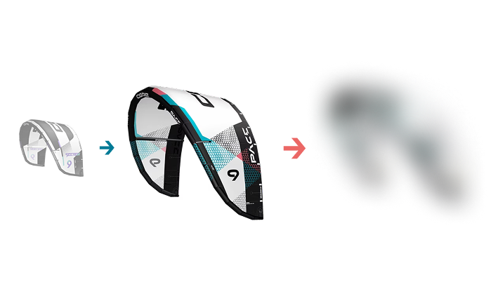 Mit seiner fixen Bridle konnten wir den Pace noch gestreckter als den XR entwerfen. In seiner besonderen Kombination aus High-Aspect-Ratio und 3-Strut-Frame haben wir es geschafft, zwei Eigenschaften miteinander zu vereinen, die sich eigentlich widersprechen: Einerseits Höchstleistungen bei Sprunghöhe, Hangtime und Flugstabilität und andererseits schnelles Loopen und Catchen.